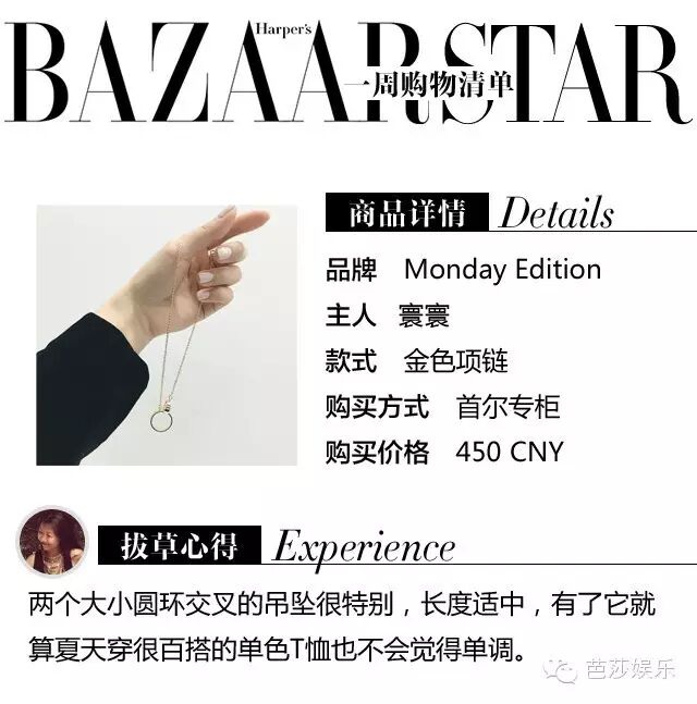 不论是手镯还是项链,Monday Edition的金属配饰样样都很出彩。不过寰寰这次逛店享受了一点小优惠哦,平时的价格可能要再高一点