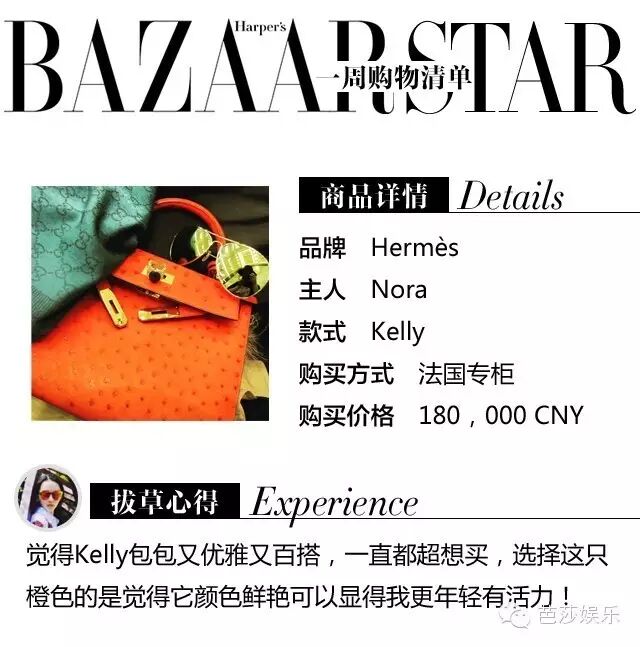 这周的芭粉晒图,芭姐发现了一个小规律:芭粉们都是经典款的真爱,又总能把经典款搭配得够时髦!Nora的Kelly包包优雅没话说,选择橙色款搭配墨绿围巾就能又亮眼又和谐
