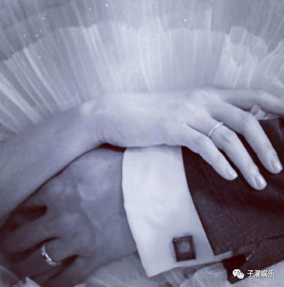 在曝光的照片中,她穿着婚纱被丈夫从背后紧紧包围,他们重叠的双手分别戴着闪亮的婚戒。虽然她的脸没有露出来,但她能感受到照片中的欢乐气氛。