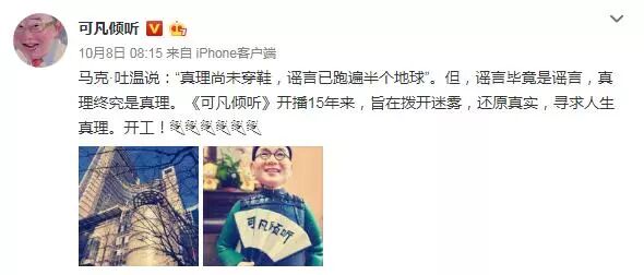 8日上午8:15,曹可凡个人官方微博“可凡倾听”发出一条微博: