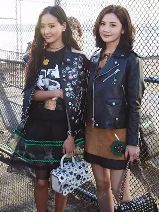蔡卓妍和孙芸芸都身穿黑色夹克亮相纽约时装周,E姐特别喜欢蔡卓妍黑色机车小皮衣内搭姜黄色连衣裙,简约干练又不失时尚。