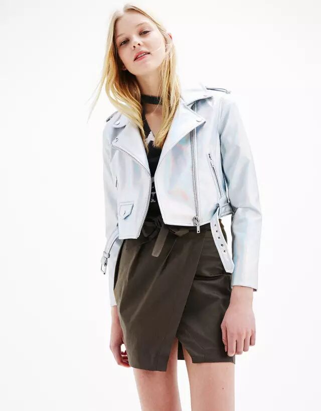 推荐理由:E姐一进Bershka店铺就被这金属光泽深深吸引,实在是挪不开眼睛了,如果喜欢闪亮的宝宝可以选择这款。