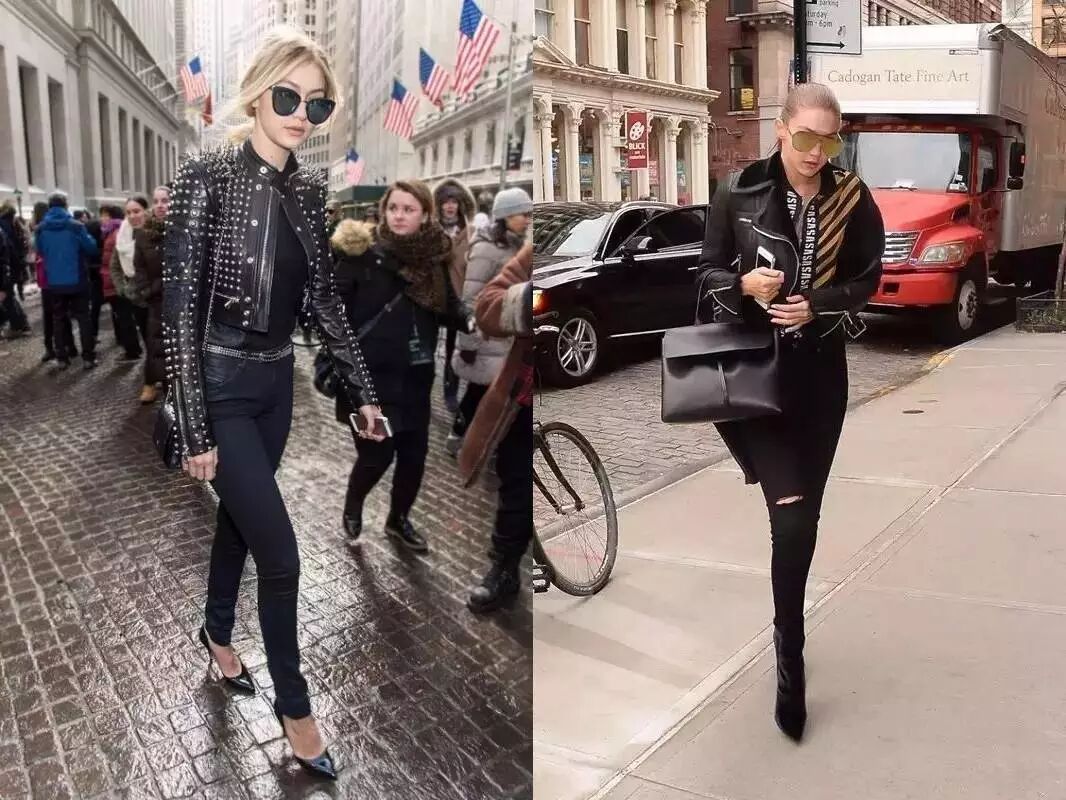 最潮范的GIGI也是超爱黑色夹克,通常搭配紧身牛仔,前卫又时尚。