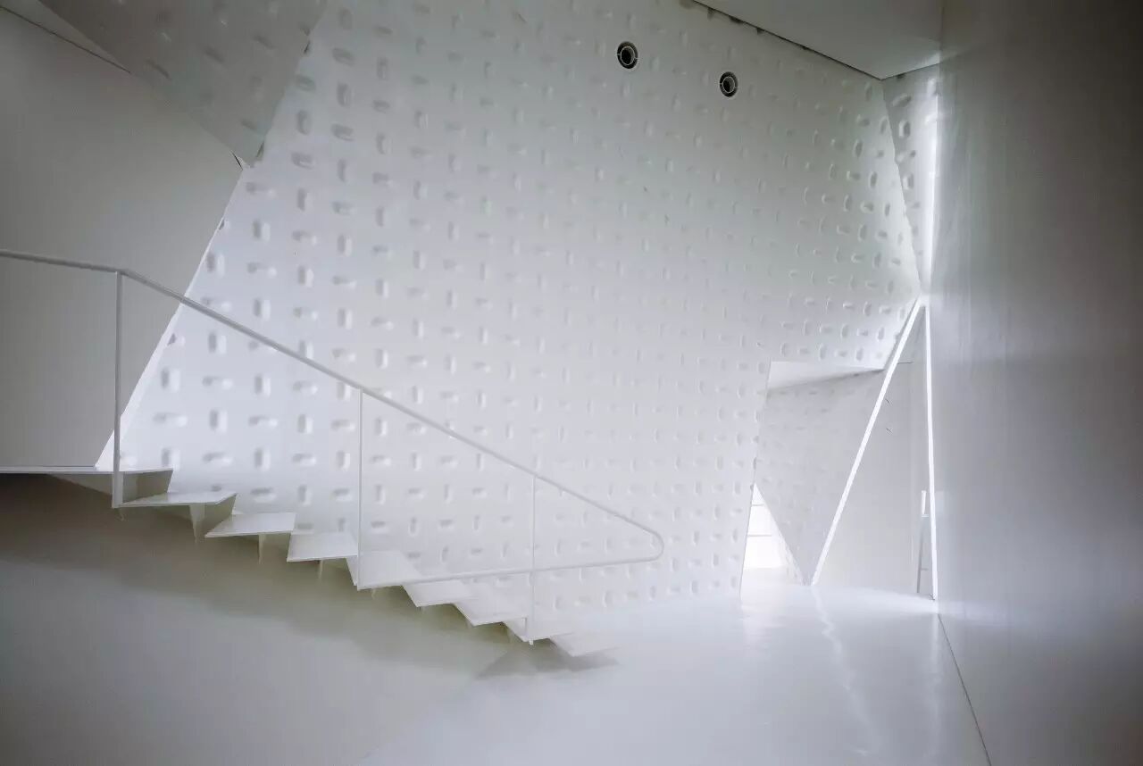 位于日本盐釜Kanno博物馆是一座为永久展示业主8件私人雕塑藏品的美术馆。不同于能够在任何形式展览上使用的白色立方体,阿部希望能够设计出独特的景观,并专为展示每件雕塑作品打造出专属空间。