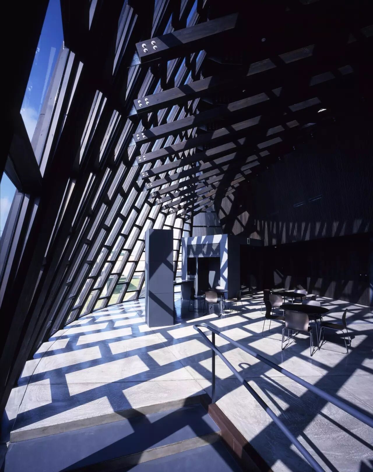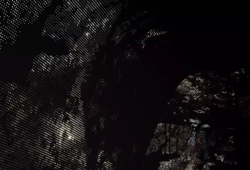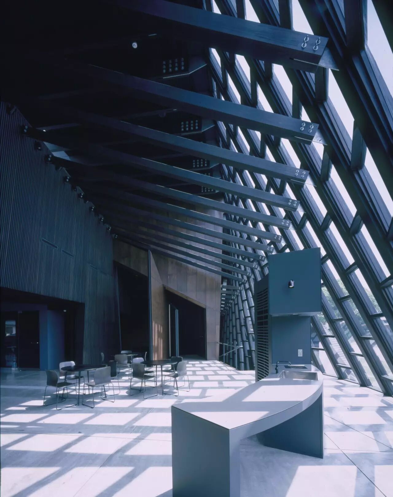 “青叶亭”(绿叶之所在)的外墙与天花板由叶子状与树枝图样装饰,通过钢板穿孔而成。