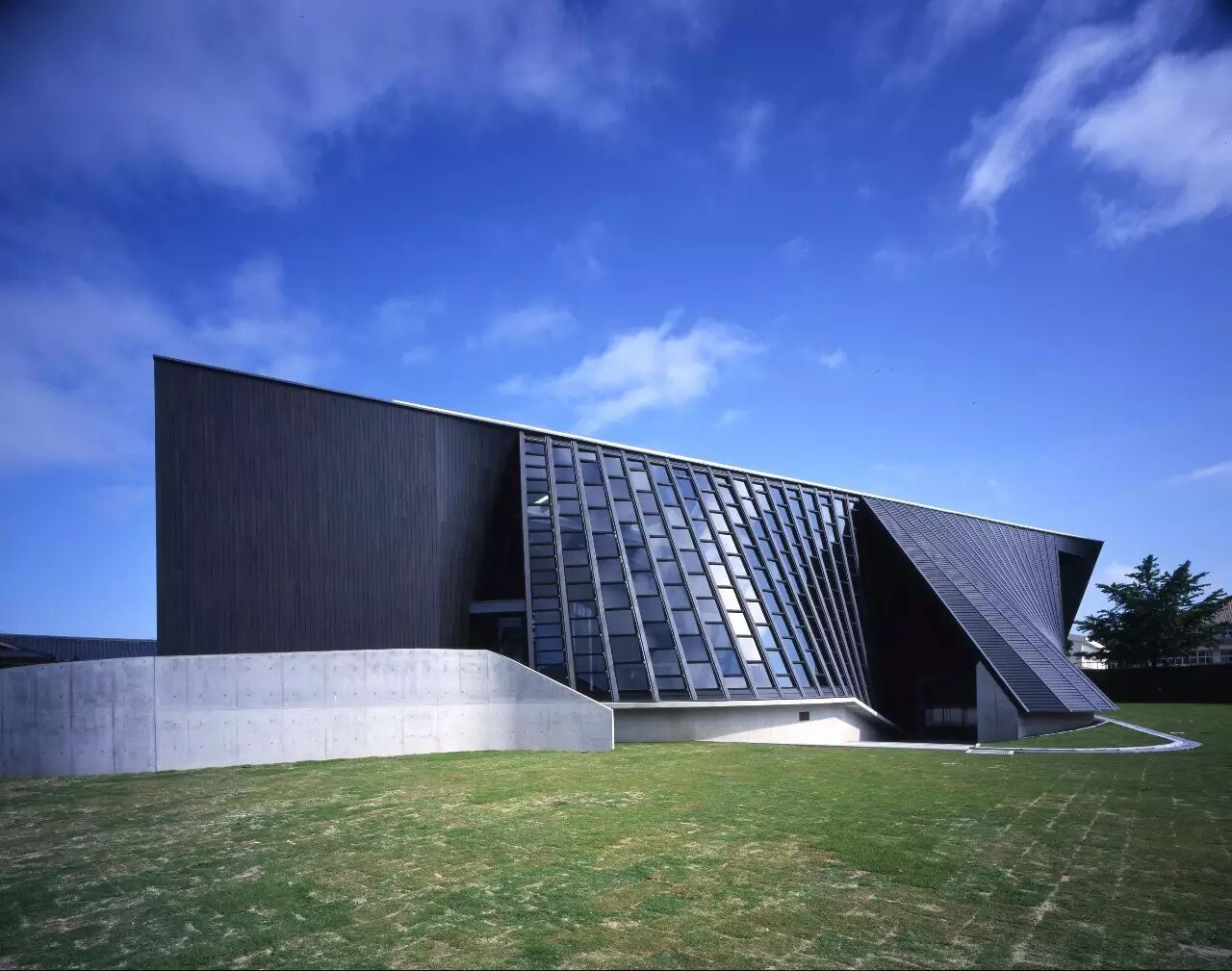 黑色的杉木在绿野中营造出一座扩张型建筑,犹如一座古老的宗教式建筑物。混凝土制基底使这座建筑仍不失厚重的美感。