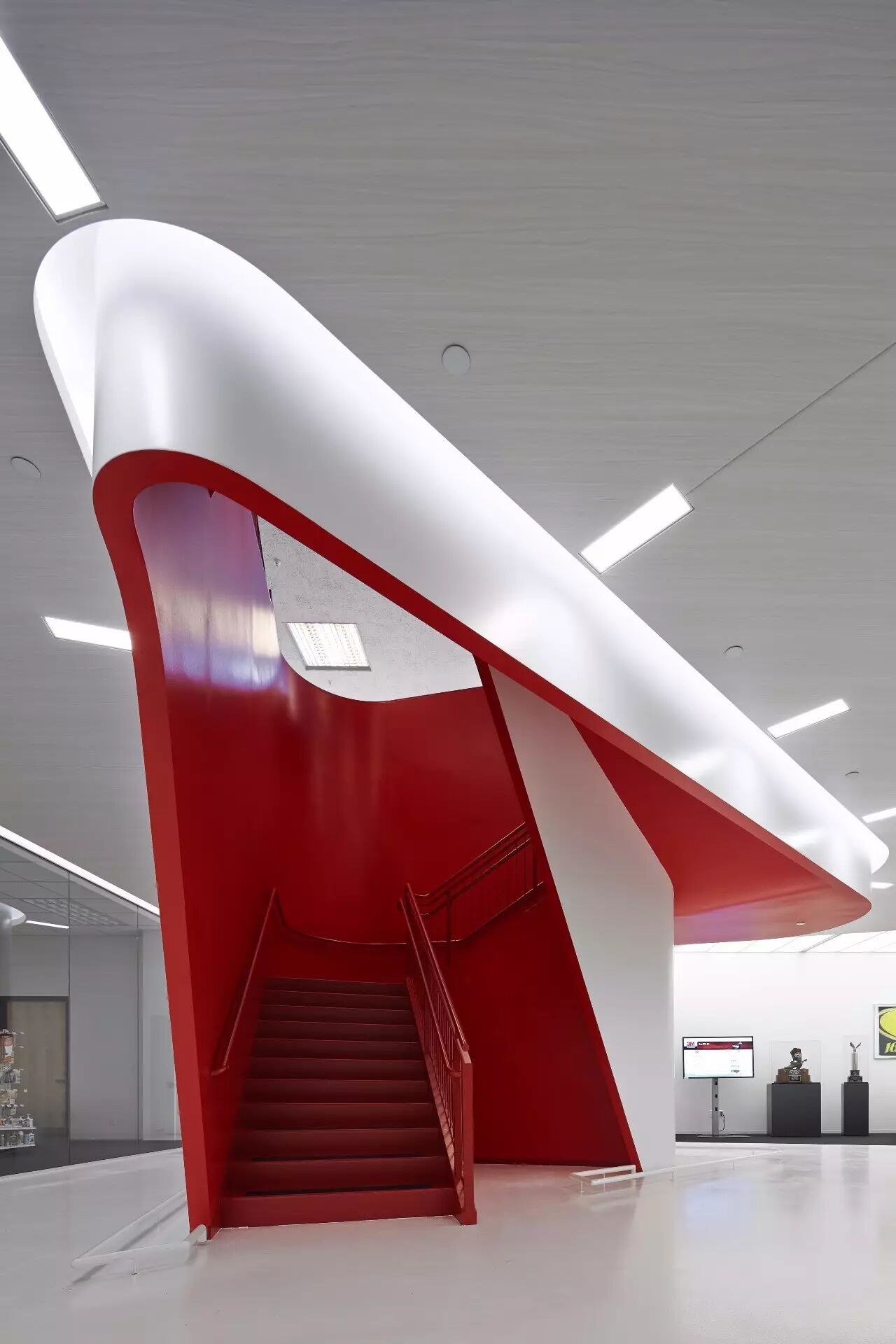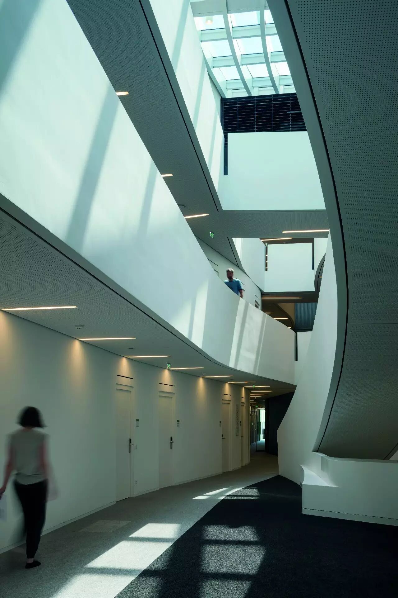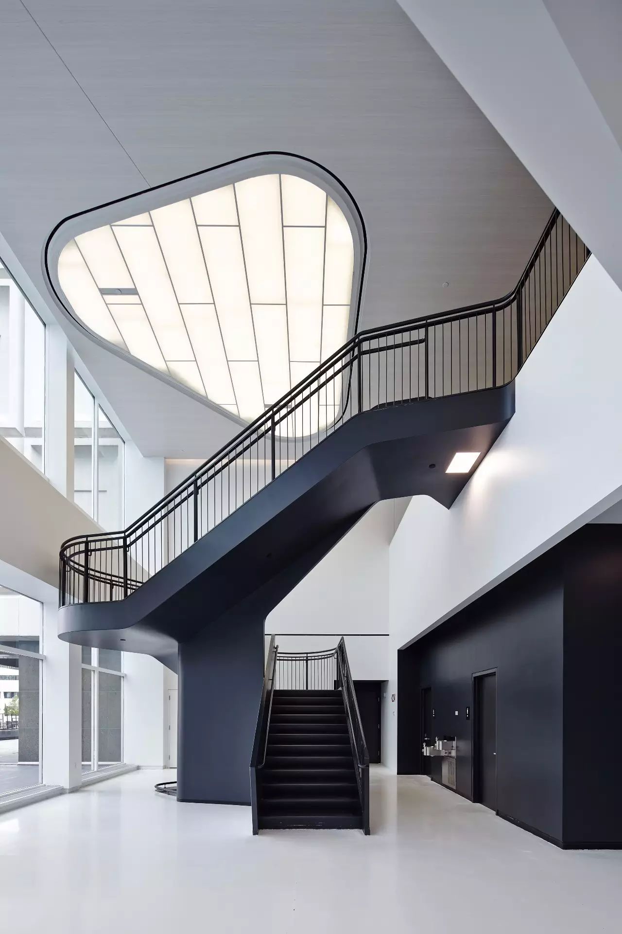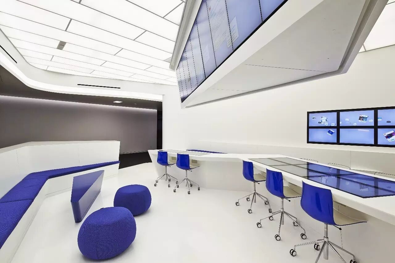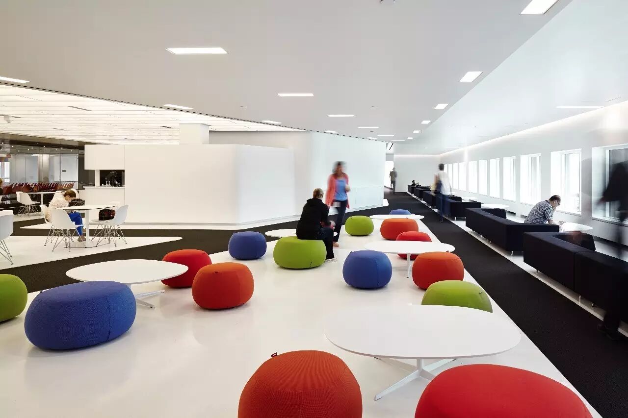 开放式的协作空间坐落在一般被认为在工作场所作用甚微的综合体过渡区,尽管高效生产力往往在非正式讨论中发生。每个“hub”都配备了明亮颜色的家具以及LED屏幕。“hub”实现了员工之间的移动设备信息共享以及网络连接。