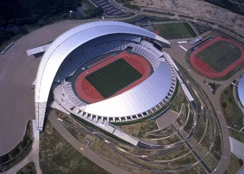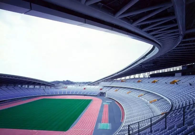 擅长超现实主义风格的阿部在宫城体育馆这一项目中表达出一种宇宙的开放性:通过试图弱化自罗马时代起就一成不变的“体育馆式”建筑风格,以叠加与之相反的形式来化解体育馆建筑原本的刚性。摒弃了通常体育馆会为了良好视觉效果而成的圆形平面,宫城体育馆由圆圈变为了一个漩涡,屋顶最小化的遮蔽了观众区,而蓝色的座椅也与屋顶一同渐隐于蓝色的天际。