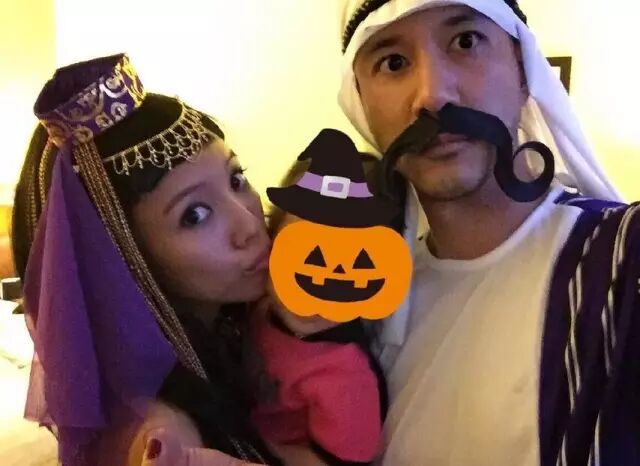 ▲王力宏与李靓蕾抱着女儿过万圣节