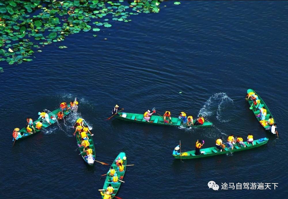 乘船游览普者黑的荷田,置身荷田中,感受“莲叶荷田田”的神秘,顺便,我们与来往的船只打着水仗。买好船票,我们便准备好装备,保护好贵重的物品,做好了防水准备,便开始了我们的神秘、刺激的游船之旅!船从景区大门出发,每船有一船夫,3把桨(可参与划),每船最多5-6人!