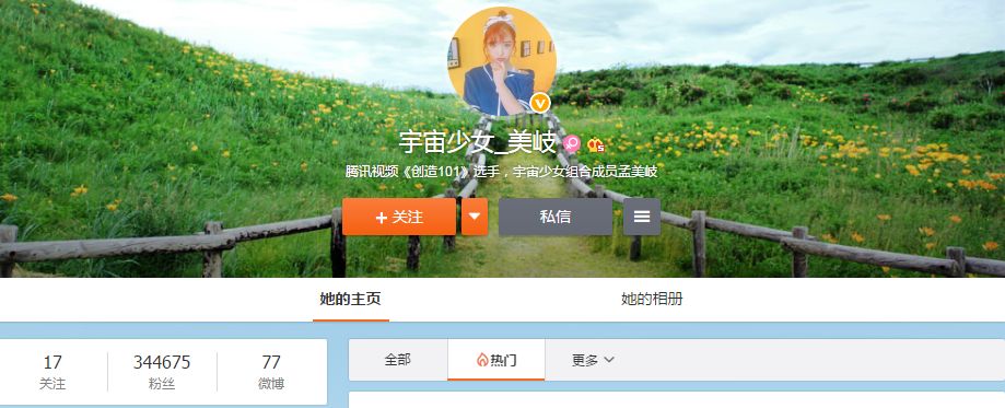 孟美岐微博粉丝数不到35万。