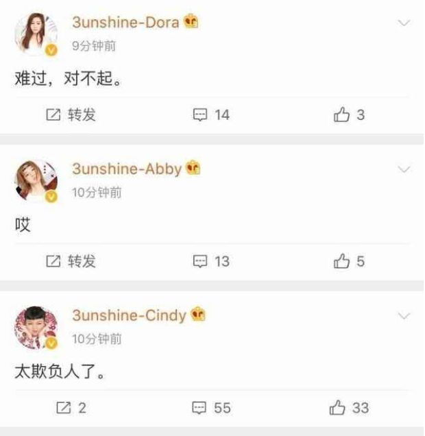 显然事情没有那么简单,节目录制后,三人第一时间在微博上发声,表达了对此事的难过和遗憾。