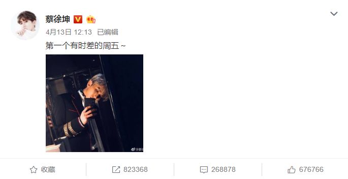 周五中午发的一条自拍博,在24小时不到的时间里,竟然达到了转放量82万,评论量26万,点赞量67万的成绩。数据直逼顶级流量,足以说明蔡徐坤的火爆程度。