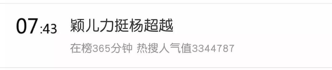 之后“颖儿力挺杨超越”也登上了热搜第一名