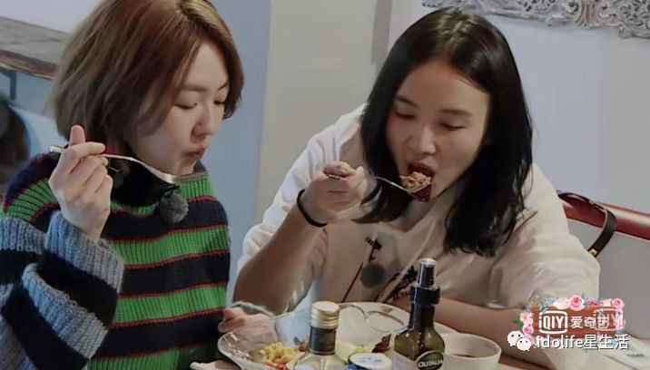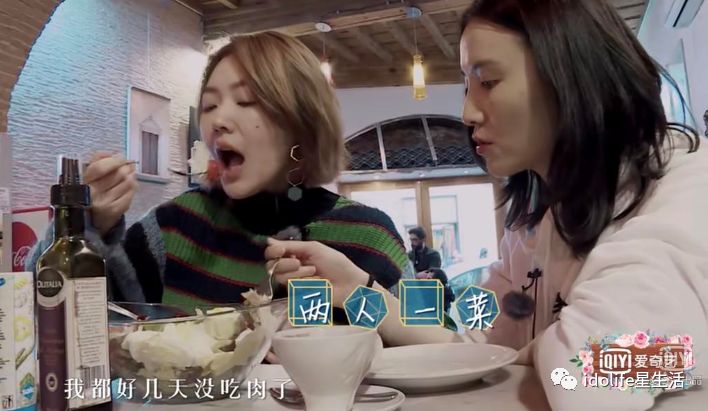 在第一集里,宋佳和小S两人吃一份沙拉,宋佳嘀咕着“我都好几天没吃肉了。”