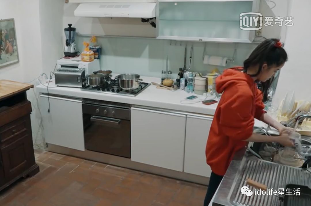 欧阳娜娜一边开始刷碗,一边点外送的食材。