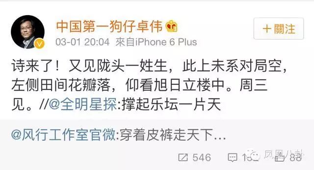 卓伟叔叔倒是这么认定了,又在微博作诗一首送祝福。