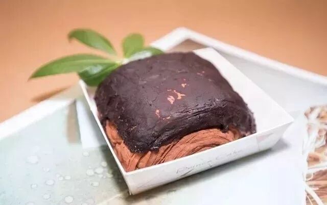 正宗的网红脏脏包,其实是在牛角包顶部的层层酥皮上浇盖厚厚的巧克力层,然后再在上面洒满巧克力粉。面粉里也会加入巧克力,成品层次内部还必须夹着一层巧克力酱。一口咬下去表面酥皮,会发出清脆的碎裂声。