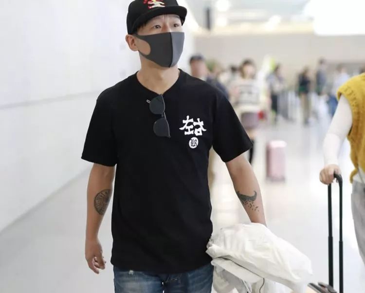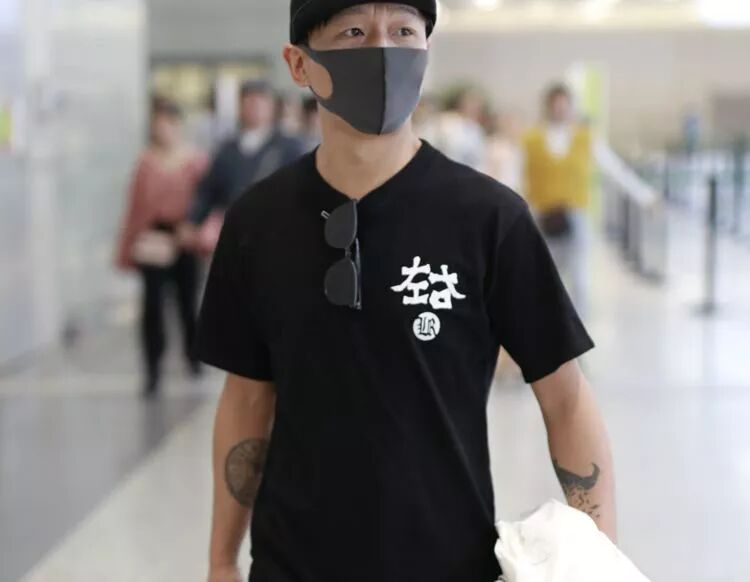陈羽凡带上口罩,大步向前走,两边胳膊上的纹身都露了出来,看起来有点酷。