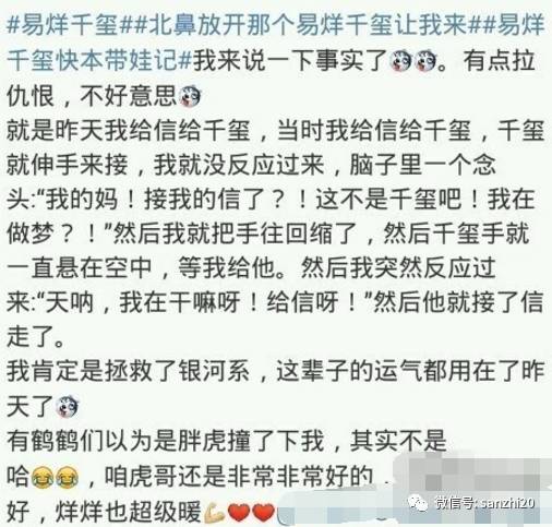易烊千玺为了接迷妹的信,把手悬在半空中! TF娱乐圈 内地男星 2017-02-24 23:52:37 314 创作不易,用心坚持,欢迎请BaGua喝几杯爱心咖啡!打赏并支持本文 打赏并删除本文 点击上方蓝字关注〖★TF娱乐圈★〗并置顶缘来是你,好巧▲微博▲ 易烊千玺,飞往长沙录制快本,在机场粉丝人山人海,其中有一位初三妹子,很紧张的递给千玺一封信,没想到千玺会收那封信,便反应迟钝,暖心的千玺手悬在空中等着粉丝的递信。图片来源:网络,侵权请联系删除关注“偶像说”,TFBOYS各种资源任你选!点击 "阅读原文" 查看,进入“偶像说” 创作不易,用心坚持,欢迎请BaGua喝几杯爱心咖啡!打赏并支持本文 打赏并删除本文 感谢您的支持鼓励,我会继续努力的!文章地址:用户邮箱:打赏金额:USDT 请输入数字点击”去打赏“,即可进行打赏支持本文章哦 易烊千玺 About the Author TF娱乐圈 功能介绍:每天更新tfboys最新动态,喜欢就关注我~ Related Posts 王源出现在宁静的最新视频中,但领口却遭到粉丝疯狂吐槽! 2019-03-21 20:51:35 杜海涛更博晒爱情小笔记,评论区却被王源粉丝霸占,原因很暖! 2019-03-02 19:40:59 王源在《经典咏流转》暴露真实唱功,导播的反应过分真实! 2019-02-12 19:39:16 王源和女生拍微电影,他给女生的备注是好有创意 2019-02-12 19:39:16 易烊千玺妈妈变老了,尤其是和两年前对比 2018-12-29 21:16:40 发表评论