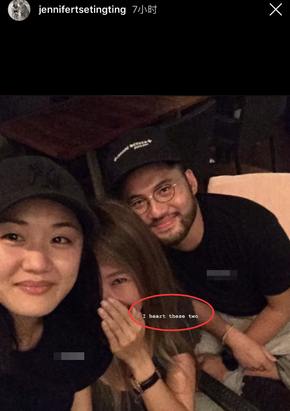 除此之外,谢婷婷还罕见晒出和异性男士合影照,同框的还有一位女性好友,谢婷婷大方表白“I heart these two(我喜欢这两个)”,字里行间难掩对好朋友的喜爱,谢婷婷捂着嘴笑得很甜,露出半只眼睛依然很甜,身后的男子默默配合拍照,男方也很温柔,似乎充满满满保护欲。