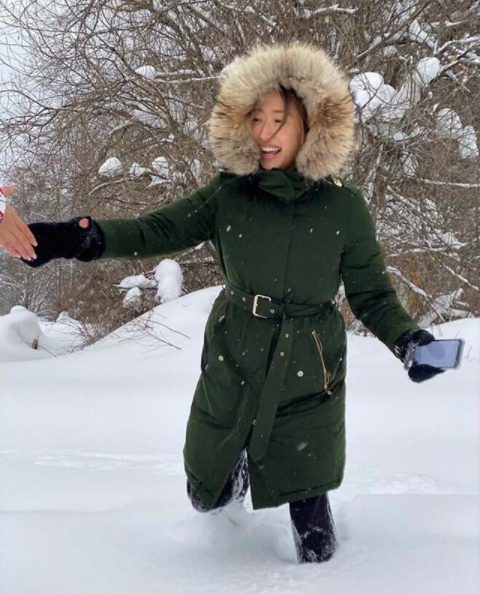 生产后谢婷婷鲜少公开私生活,年初她也外出滑雪,一个人的生活还是很惬意的。