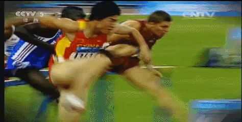 2012 年伦敦奥运会,刘翔在跨越第一道栏时摔倒,跟腱断裂。