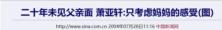 2004年媒体曝出萧亚轩拒认生父的新闻,可以看出,她对当年抛弃家人的父亲一直耿耿于怀。