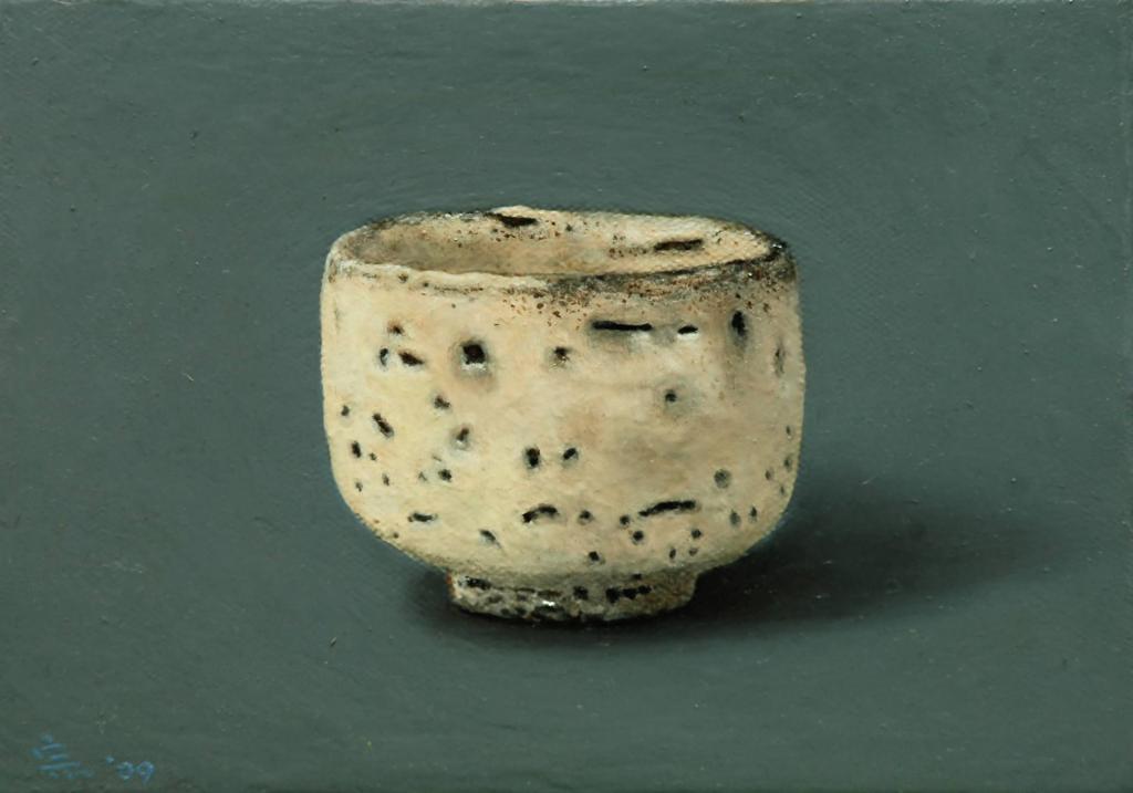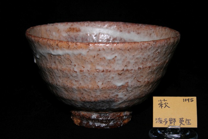 鼠志野茶碗:志野茶碗是在志野这个地方烧造的茶碗,代表了茶人小堀远州的美学理解。表面大量的气泡形成的洞和超厚的釉是其特点。其是对乐茶碗的进一步发挥。
