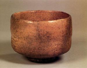 赤乐茶碗:利休是居士,因此他信奉佛,并且影响着乐茶碗的颜色,因为在佛严重,似乎只有红色和黑色。因此乐茶碗有了红色,而红色的烧造难度要远远大于黑色,并且并不是纯红。丰臣秀吉非常喜欢红色茶碗,农民出身的他,喜欢这种喜庆的颜色。但是利休却觉得红色茶碗太俗气。于是红与黑的争论,一直持续。