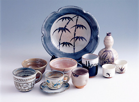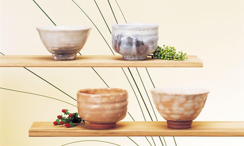 美浓烧:是在美浓地方的窑口,这里自古以来就是陶器烧造场所,战国时代是中部地区最大的兵工厂,专门制作日本的火枪和冷兵器。美浓烧主要仿制中国的天目茶碗,并且开发出了一种非常特别的茶碗,白天目。