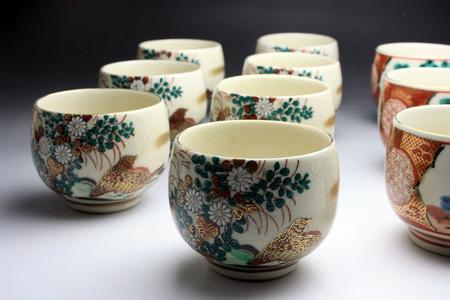 伊万里烧(有田烧):伊万里在九州,是日本的彩瓷基地,以模仿景德镇的青瓷,彩瓷为主,主营出口,和茶具关系比较小。但是千家流有一派极其崇尚华丽的瓷器,因此多用伊万里瓷。
