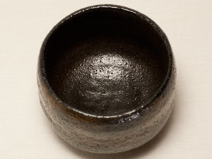 黑乐茶碗:黑色茶碗是借鉴了建州黑釉的配方制造而成的没有窑变的茶碗。早期乐茶碗全部都是不规则的,这是故意为之的,因为日本的茶道追求浑然天成的不对称美,虽然看上去很破烂,但是其实现制作陶胎,烧成陶器,定型,然后再上釉,进行二次烧造的精品。