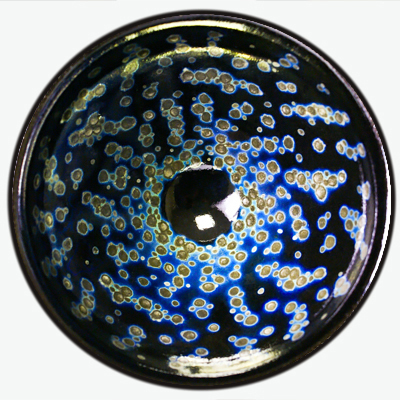 这是日本东京静嘉堂收藏的曜变天目建盏,被称为世界三大曜变天目茶碗之一。(前些日子,静嘉堂举办天目茶碗展,有机会一睹这南宋时代建盏的风采)