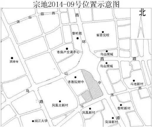 其中,宗地2014-09号地块就是位于鼓楼区斗池路北侧、西环中路西侧的黎明永辉超市周边地块,面积45038平方米(67.56亩),用途为商服(商务办公、商业)用地、住宅用地、公园绿地,住宅应为高层建筑。该地块商业建筑面积不超过6万平方米,住宅建筑面积不超过3.8万平方米(作为安置房使用)。当时,该地块由华润以底价9.2亿元竞得,楼面价4085元/平方米。