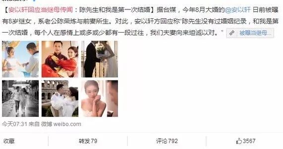 安以轩公开回复“陈先生没有过婚姻纪录,和我是第一次结婚,每个人在感情上或多或少都有一段过往,我们夫妻向来坦诚以对。”然而对于安以轩的回应,眼尖网友不买账,认为她只是否认了婚姻纪录,但没有否认继女一说,是否说明陈荣炼之前是未婚生女。