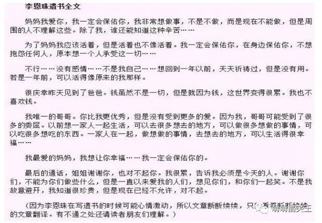 随后李恩珠的遗书被公布于众,真相跟随浮出水面。从遗书中可以看出,李恩珠的生活十分痛苦,并且字字揪心,最终选择了逃避这个世界。但在李恩珠去世没多久后,有媒体曝光了李恩珠曾经遭受的一些“不为人知”的丑事。