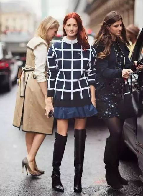 毛衣和长靴同色的话,季能穿出不同的高级感。