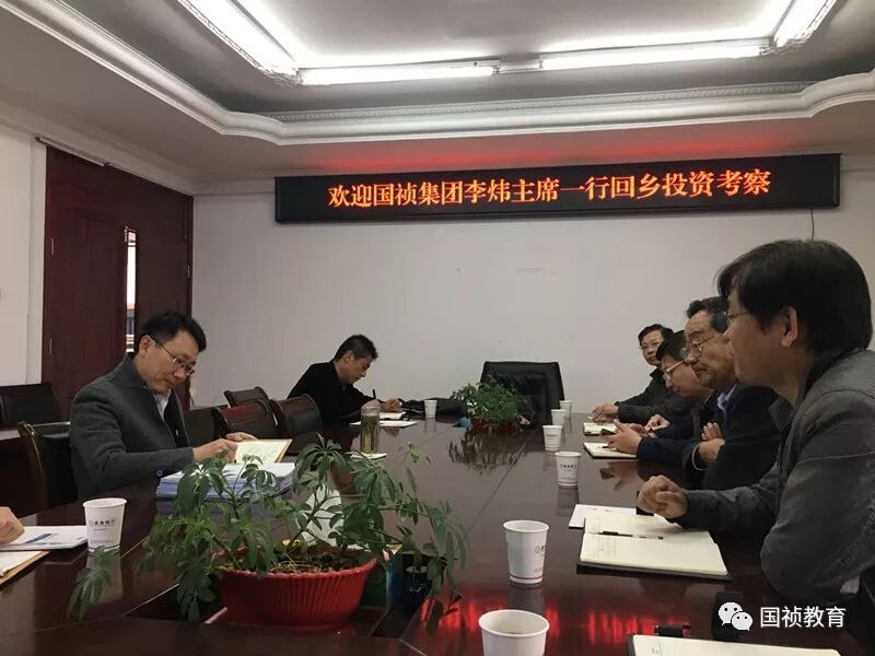 2017年11月13日-14日,国祯集团董事局主席、国祯教育公司董事长李炜先生,国祯集团监事局主席、国祯教育公司监事长李松筠先生,国祯教育公司总经理康庆先生等一行6人对界首市教育事业进行调研。