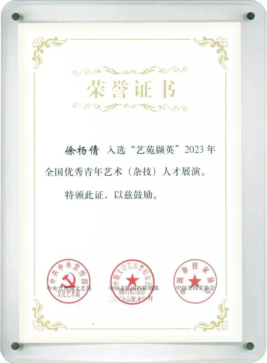 图为徐杨倩证书