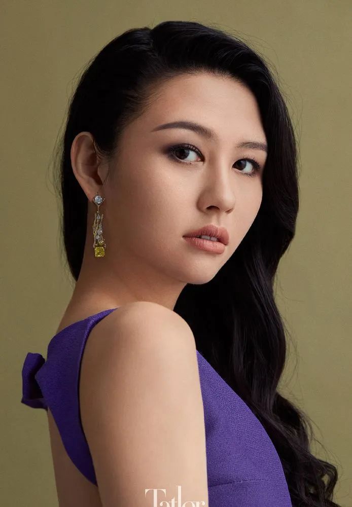 内页照片,沈月则换上了紫色修身连衣裙,她俏脸妩媚,秀发飘逸,表情时而温婉,时而冷峻,搭配的流苏镶钻耳饰精致好看,整个人气质超凡。