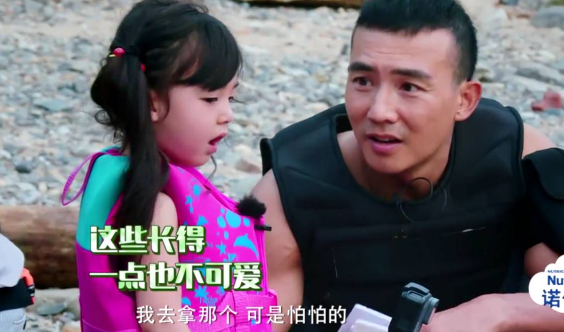 没有拿意味着没有晚餐吃,而且作为唯一一组没有拿到东西的倒数第一名,顾不上丢不丢脸。和陈小春动不动就发火大问“What are you doing?”或者走到前面居高临下生气催促Jasper“hurry up!”截然不同的是,他依然没有发火,他蹲着用了和小泡芙一模一样的儿童型的语言表达模式。“那我们晚上就没得吃了耶!”说完又亲了一下小泡芙表示安慰。