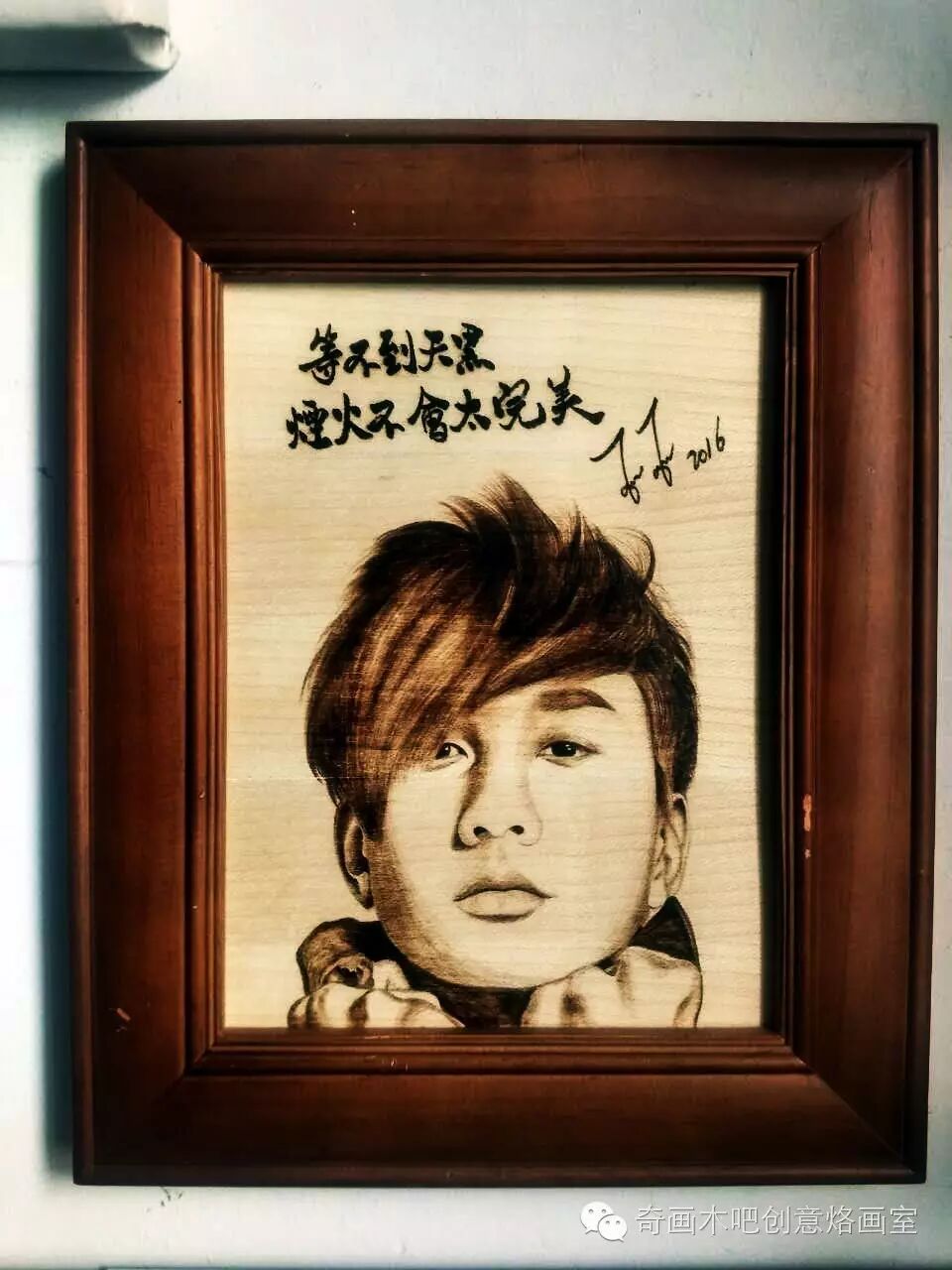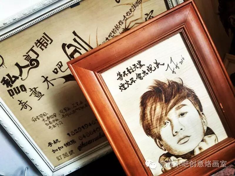奇画木吧烙画室主要经营范围:卡通动漫、风景画、工笔画、书法、人物肖像、创意手绘、各种小挂件定做等及工作室现成烙画作品