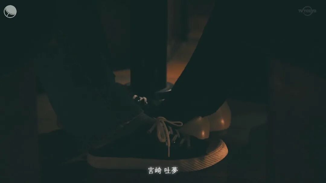两人在聊漫画创作时,在桌底是另一副画面,男主的脚勾住女主的脚,将她的双脚并拢合并在了自己的两脚间。
