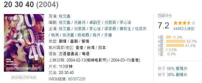 今天,小编要给各位推荐的电影叫做《20 30 40》。