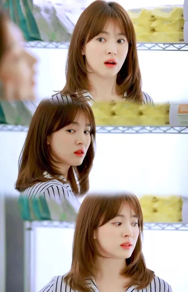 ▲再到2016年大火的《太阳的后裔》,姜暮烟小姐姐的焦糖棕的空气八字刘海造型给无数中长发的小姐姐们种了草,不仅完美地修饰了脸型,整体的发色衬的肤色亮白,美的很邻家。