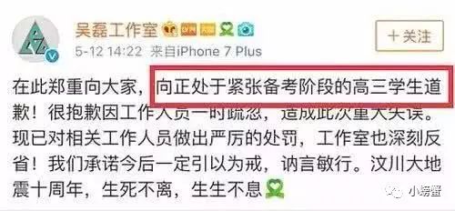 本来已经是错,结果一部分粉丝非要洗吴磊在认真备考中,微博是工作室代发的,辣鸡团队别让自家偶像背锅,工作室也顺势出面承认错误并道歉,但越描越黑