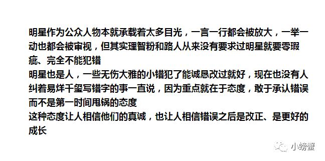 除了对人设的质疑,路人这次反感的另一大原因就是一些“死忠粉”的抵死维护,明明不算多大的错误,非要找理由证明偶像没错,这种对偶像无条件的认可与忠心太容易让人认为是脑残粉,反而给偶像招黑