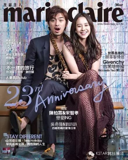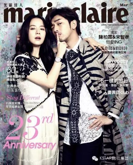 宋智孝和陈柏霖为台湾版的《Marie Claire》拍摄了一组情侣封面,每一张都在秀,恩,爱。