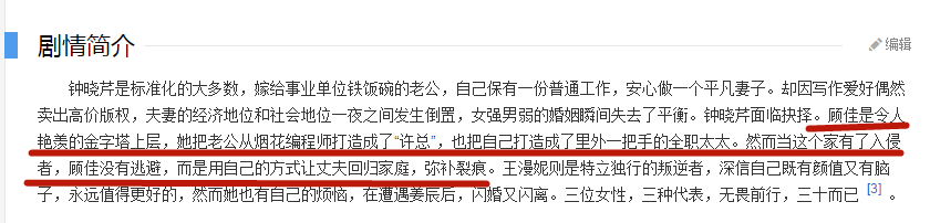 而剧情更是荒谬,在网传剧情中顾佳是个家庭主妇,后面老公出轨,她选择原谅。